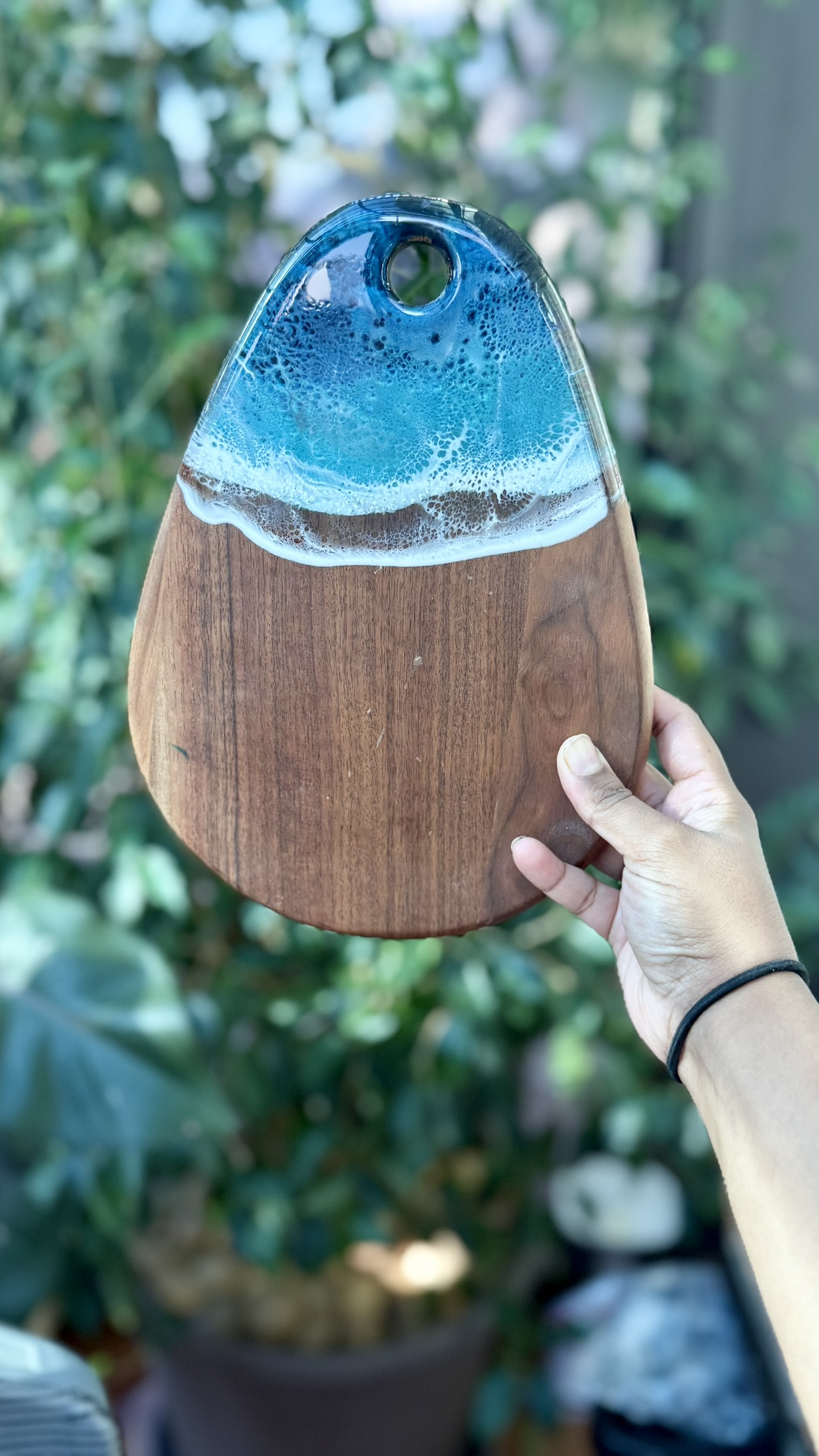 Premium Walnut Wood – Strong, durable, and naturally beautiful with heat resistant, food safe resin on wood