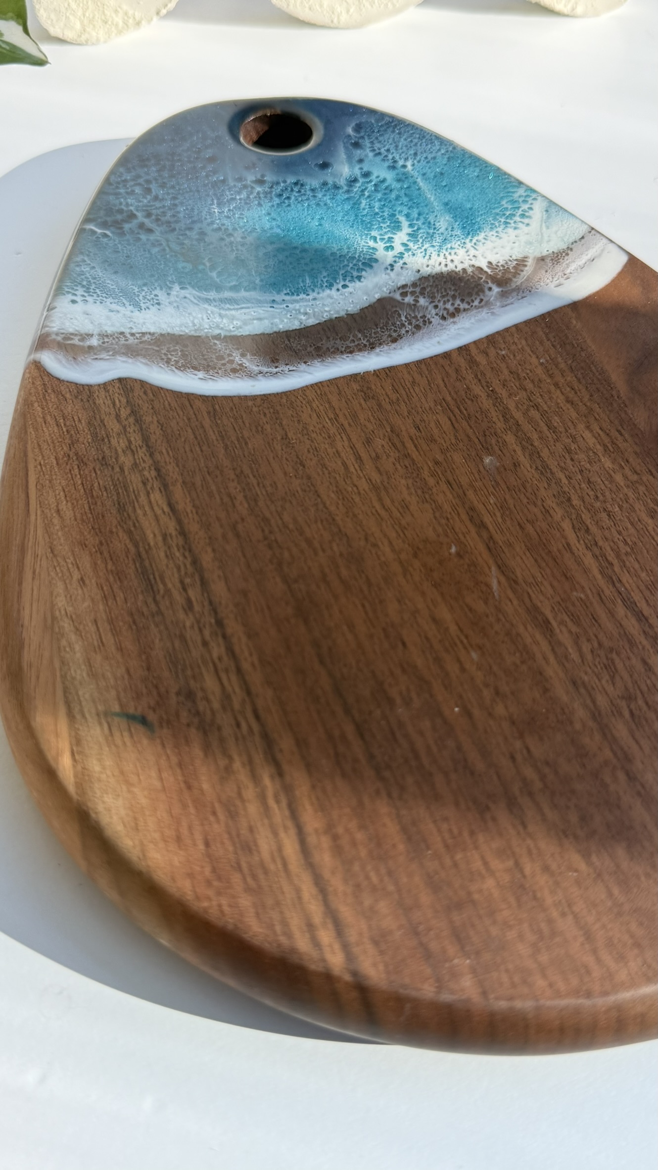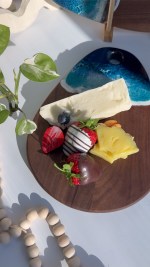 Perfect for serving cheeses, fruits, desserts, and appetizers, this artisan board also doubles as stylish kitchen décor or a thoughtful gift for weddings, housewarmings, or special occasions. Each board is one-of-a-kind, making it as unique as the waves that inspired it.