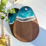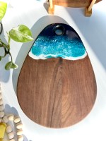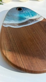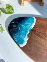 Bring the beauty of the ocean into your home with this handcrafted walnut charcuterie board, finished with a stunning ocean-inspired resin design. The rich walnut wood provides durability and natural elegance, while the glossy blue resin waves create a coastal charm that makes every serving moment unforgettable.
