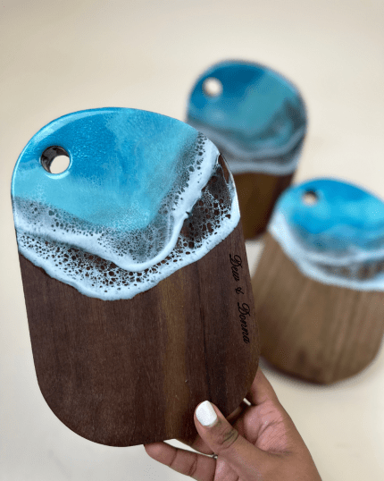 Ocean-Inspired Resin Art – Glossy blue wave design, no two boards alike
