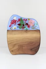 Handmade pressed flower resin cheese board made from recycled wood – unique sustainable charcuterie board, food-safe, eco-friendly gift
