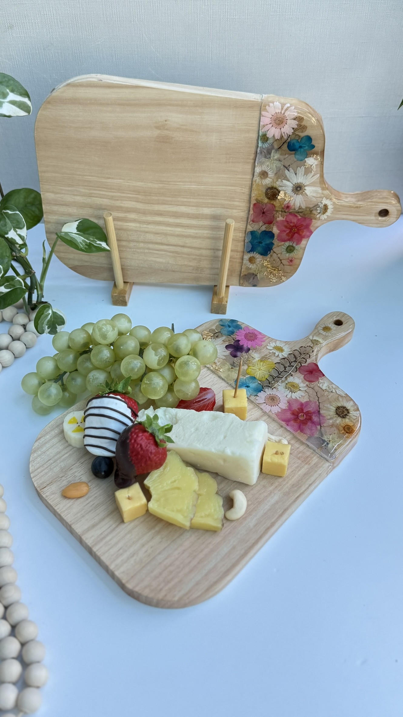 Elevate your hosting with this TalkingThyme’s handmade pressed flower cheese board, crafted from recycled wood and food-safe resin. Each charcuterie board is a one-of-a-kind functional art piece, featuring real pressed flowers preserved forever.