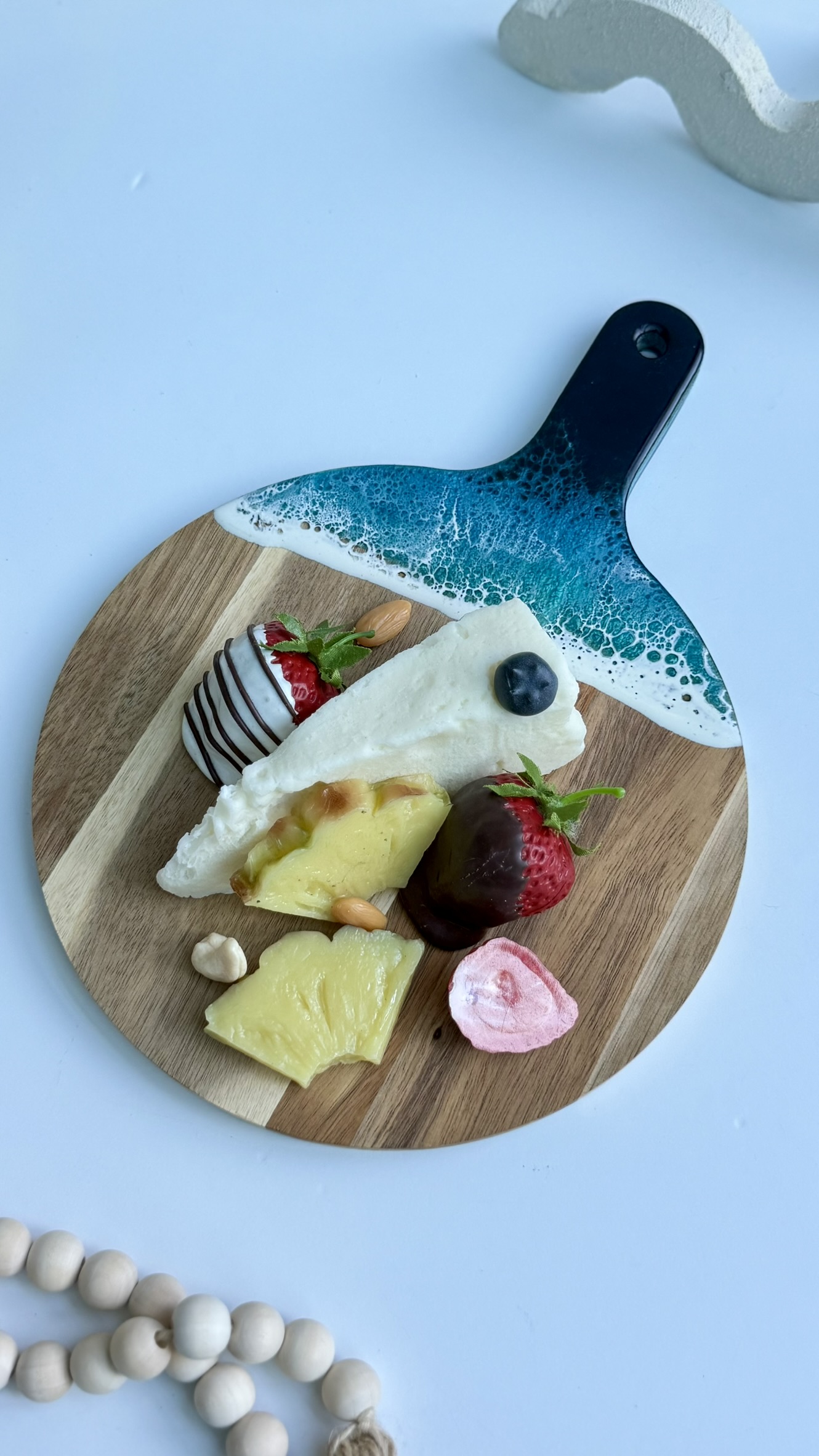 TalkingThyme Ocean Resin Mini Cheese Board – Affordable 5×8 Walnut Snack Plate, Spoon Rest & Personalized Gift